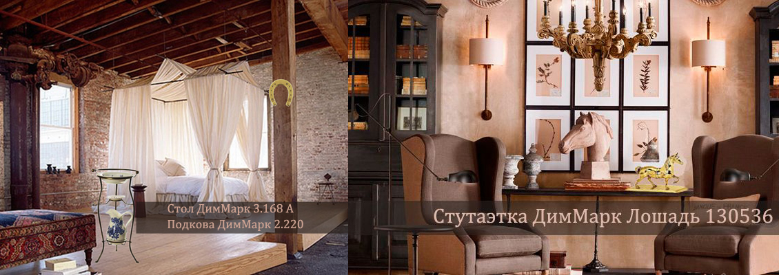 На втором фото (справа) мы представили стиль кантри, сочетающийся с винтажным стилем, в котором прослеживается тема лошадей, куда отлично вписалась статуэтка из латуни цвета глянцевая бронза от ДимМарк 130536. Мы предлагаем различные статуэкт в форме лошади из латуни, а также небольшие аксессуары из латуни, которые подойдут для оформления рабочего стола, полок или камина.