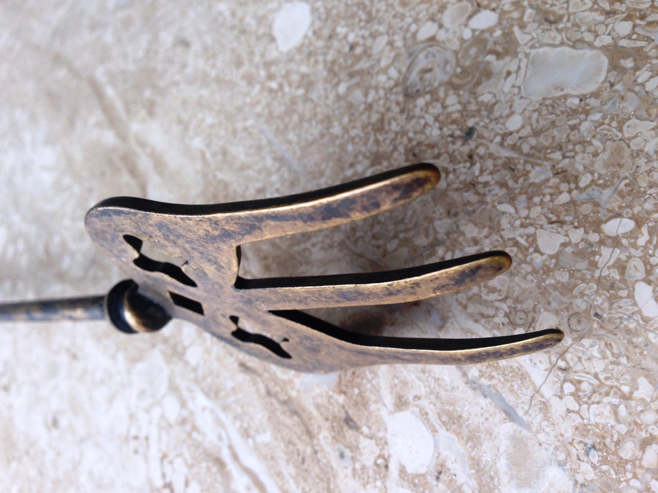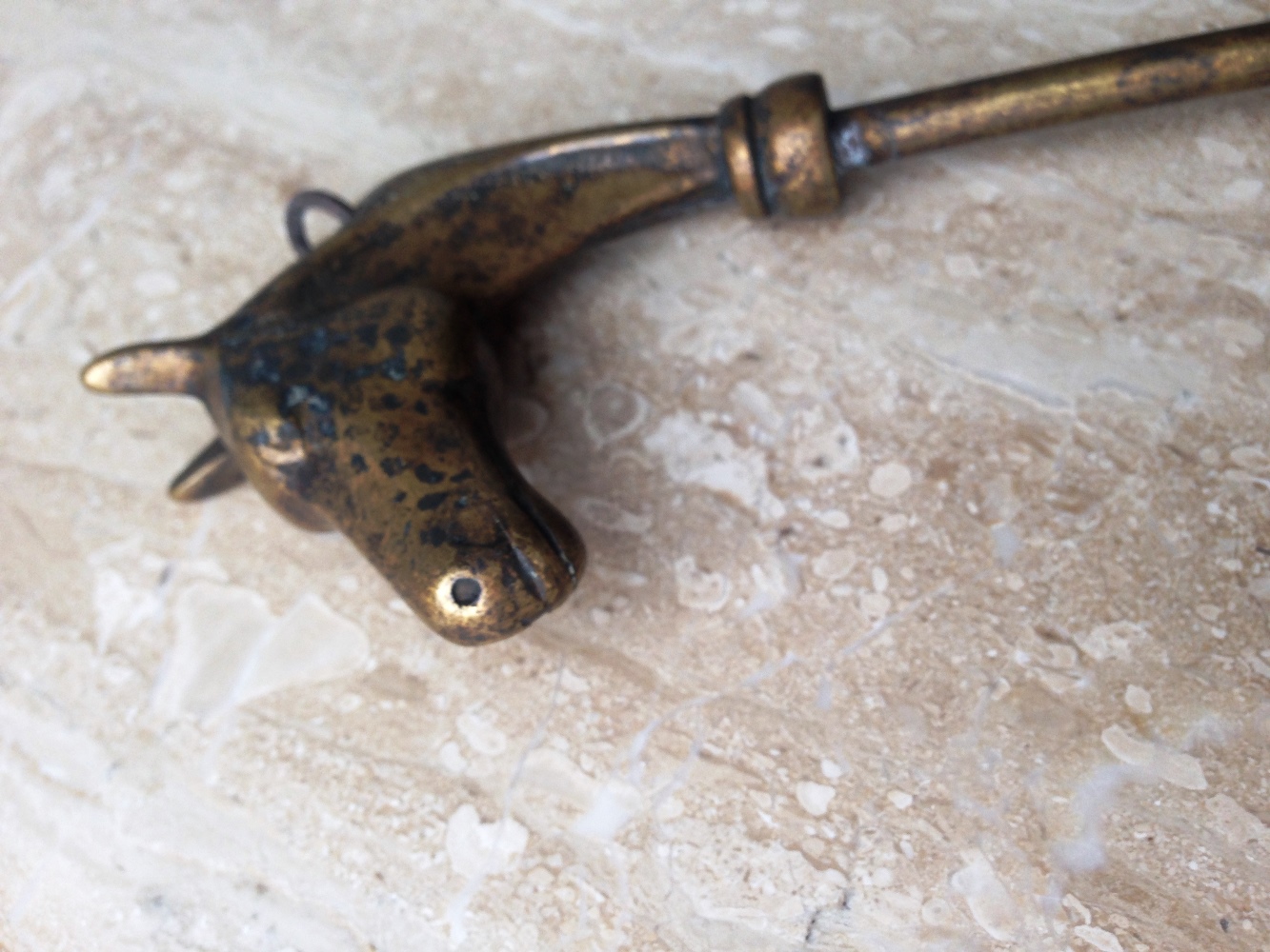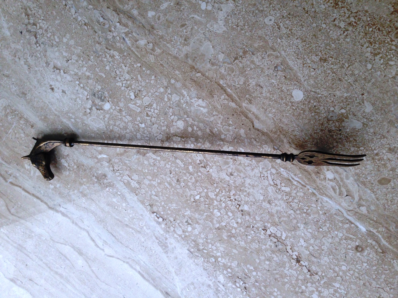 Tрезубец c ручкой голова лошади в состаренной латуни