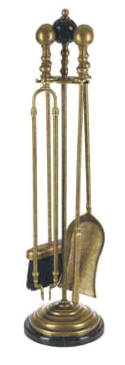 Каминный набор (кочерга, щипцы, совок, метелка) мрамор черного цвета, цвет античный 1193AMN
